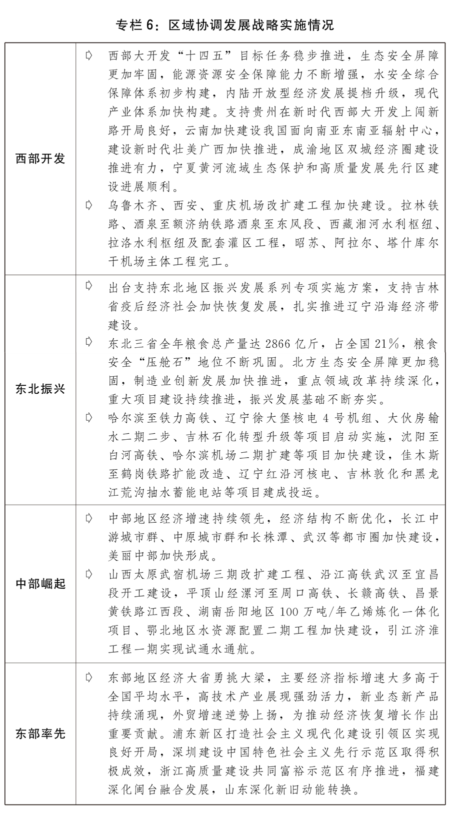 (七)扎實(shí)推動(dòng)重大戰(zhàn)略部署落地,區(qū)域經(jīng)濟(jì)布局進(jìn)一步優(yōu)化。著力促進(jìn)區(qū)域協(xié)調(diào)發(fā)展,扎實(shí)推進(jìn)新型城鎮(zhèn)化建設(shè),優(yōu)勢(shì)互補(bǔ)、高質(zhì)量發(fā)展的區(qū)域經(jīng)濟(jì)布局和國(guó)土空間體系加快構(gòu)建。